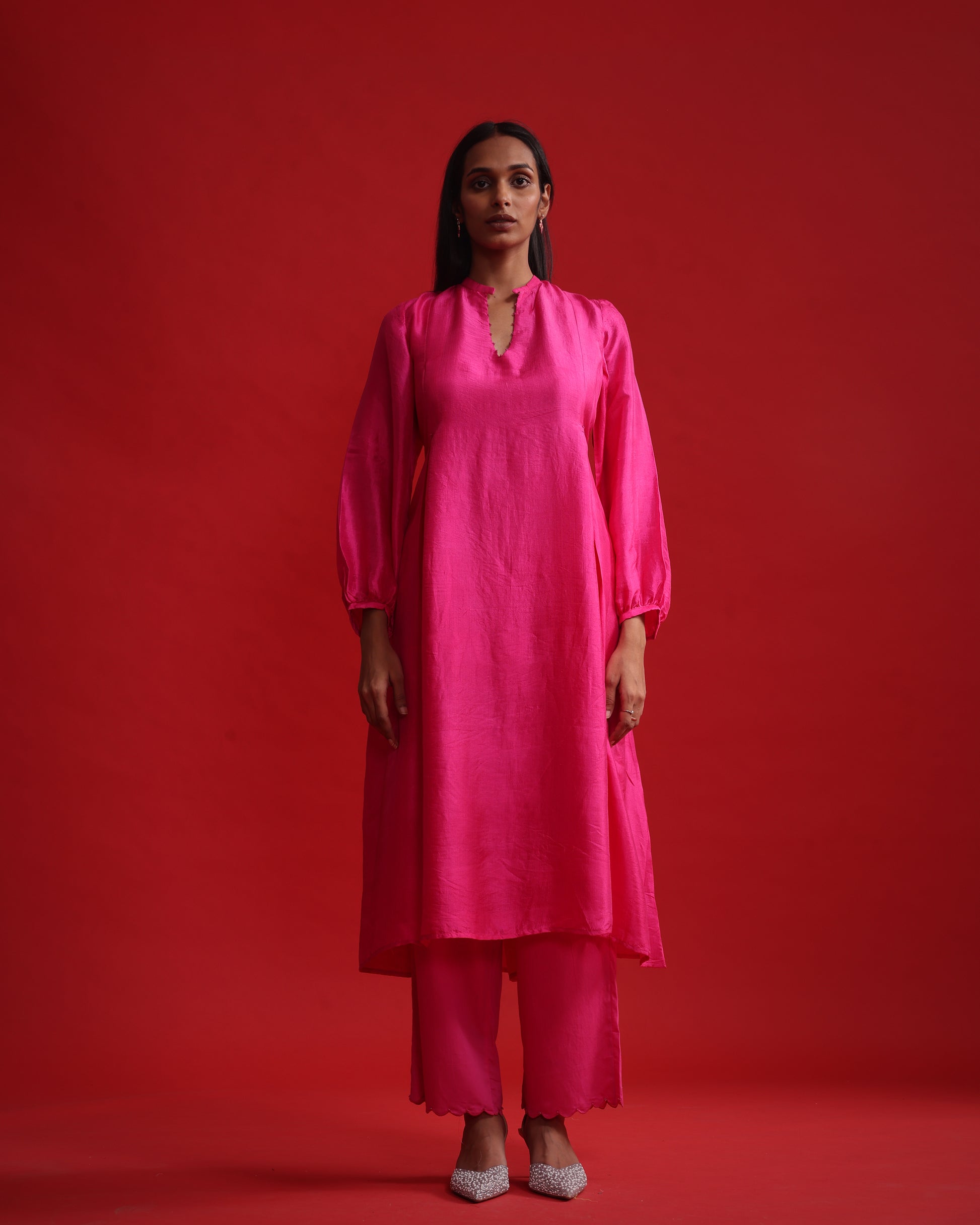 \nPLAIN SOLIDE COLOR KURTA SET WITH SOME BEADS DETAILINFG ON NECK. STRIGHT PANTS WITH SCALLOP EMBROIDERY.