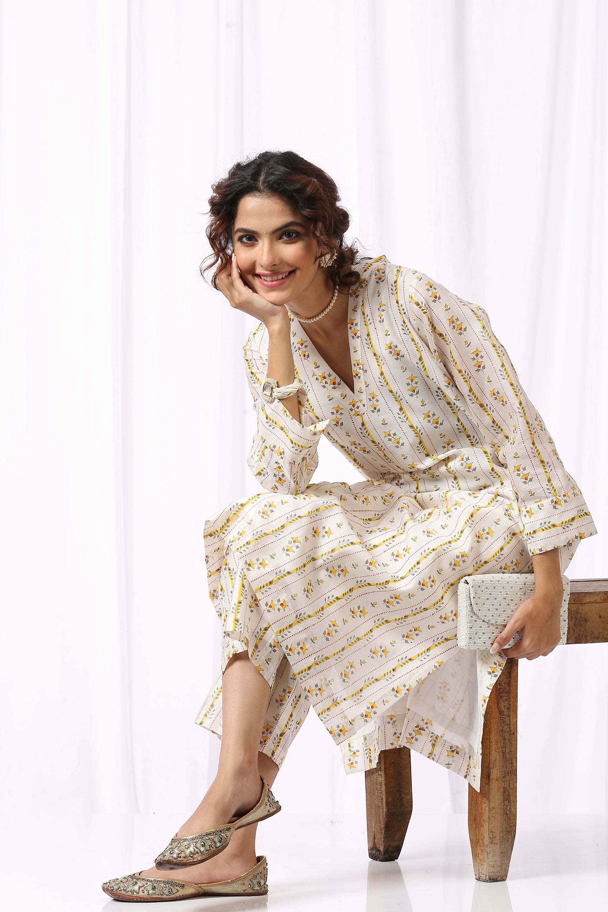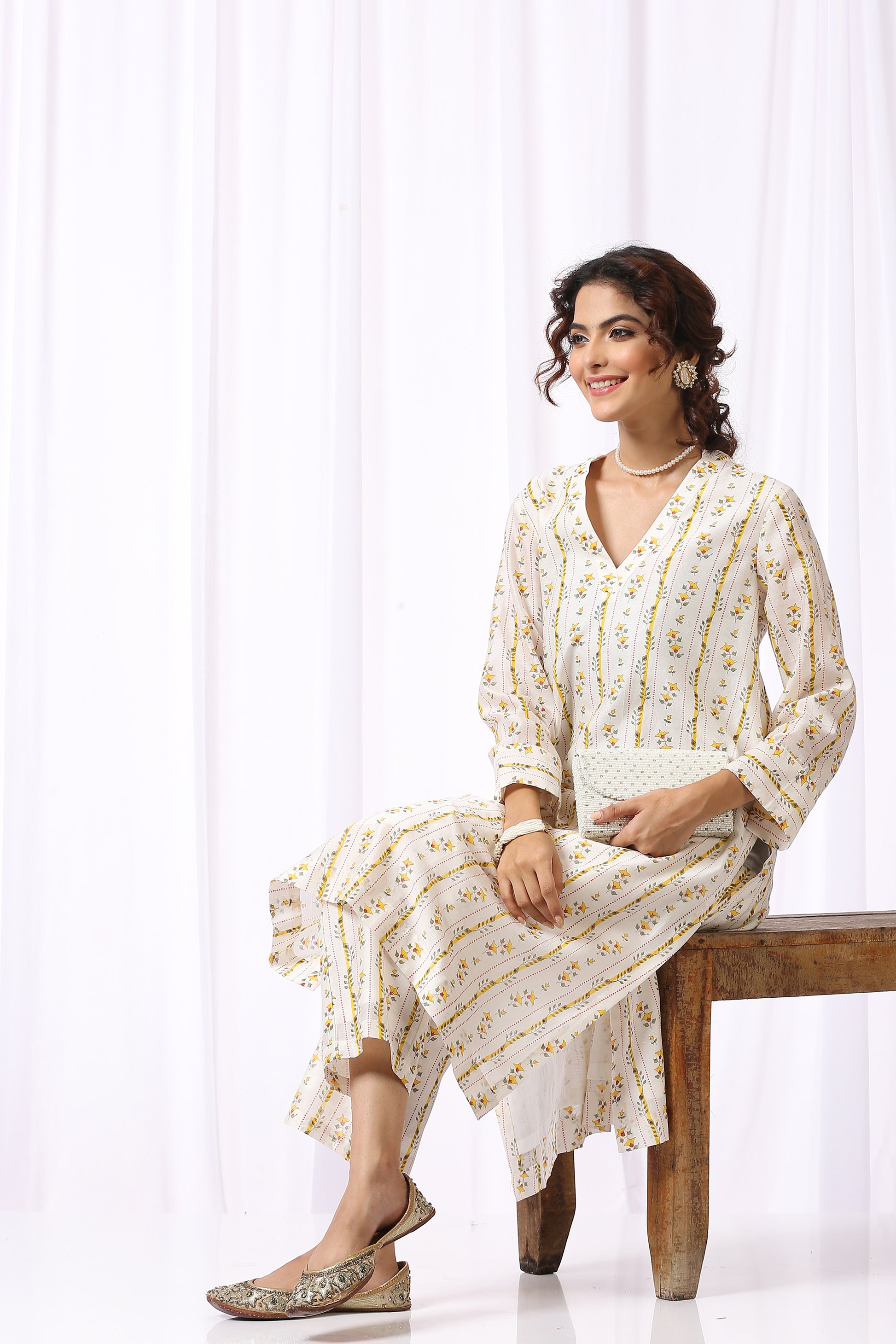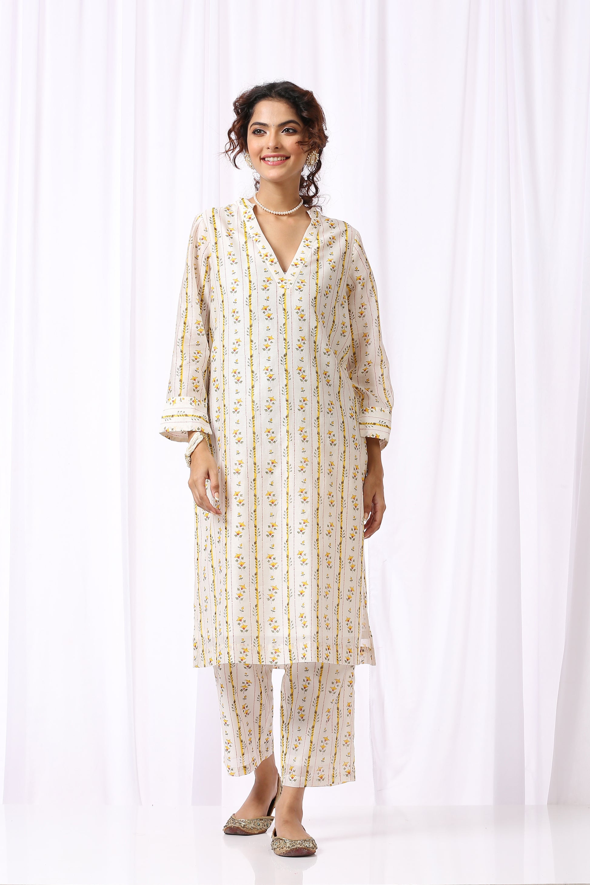 WHITE BASE CHANDERI HAND BLOCK PRINTED KURTA SET OF-2