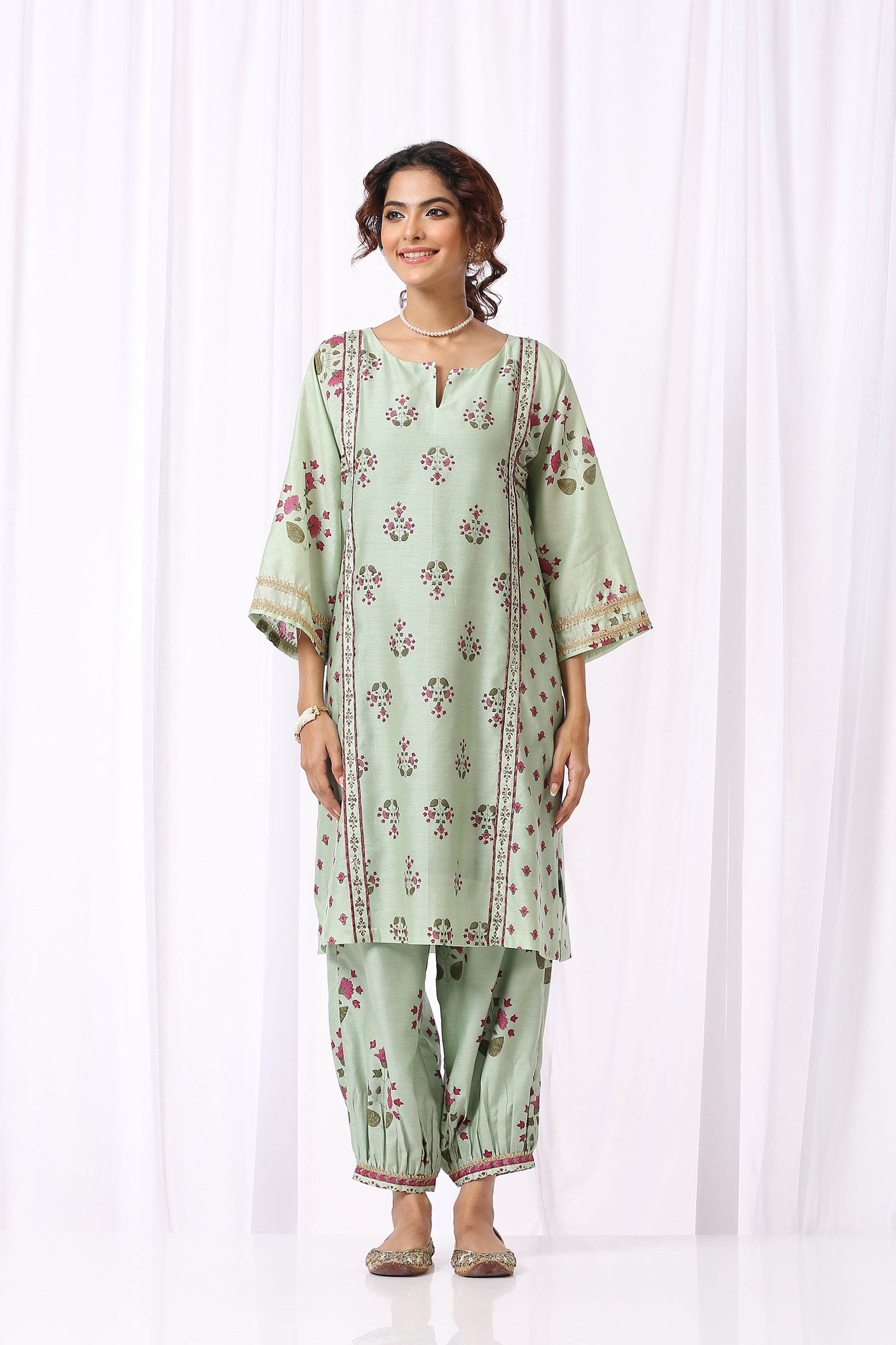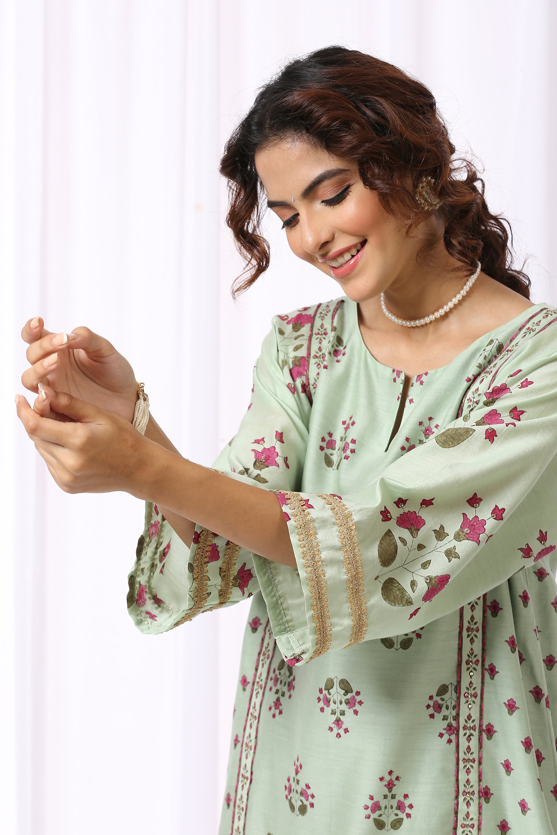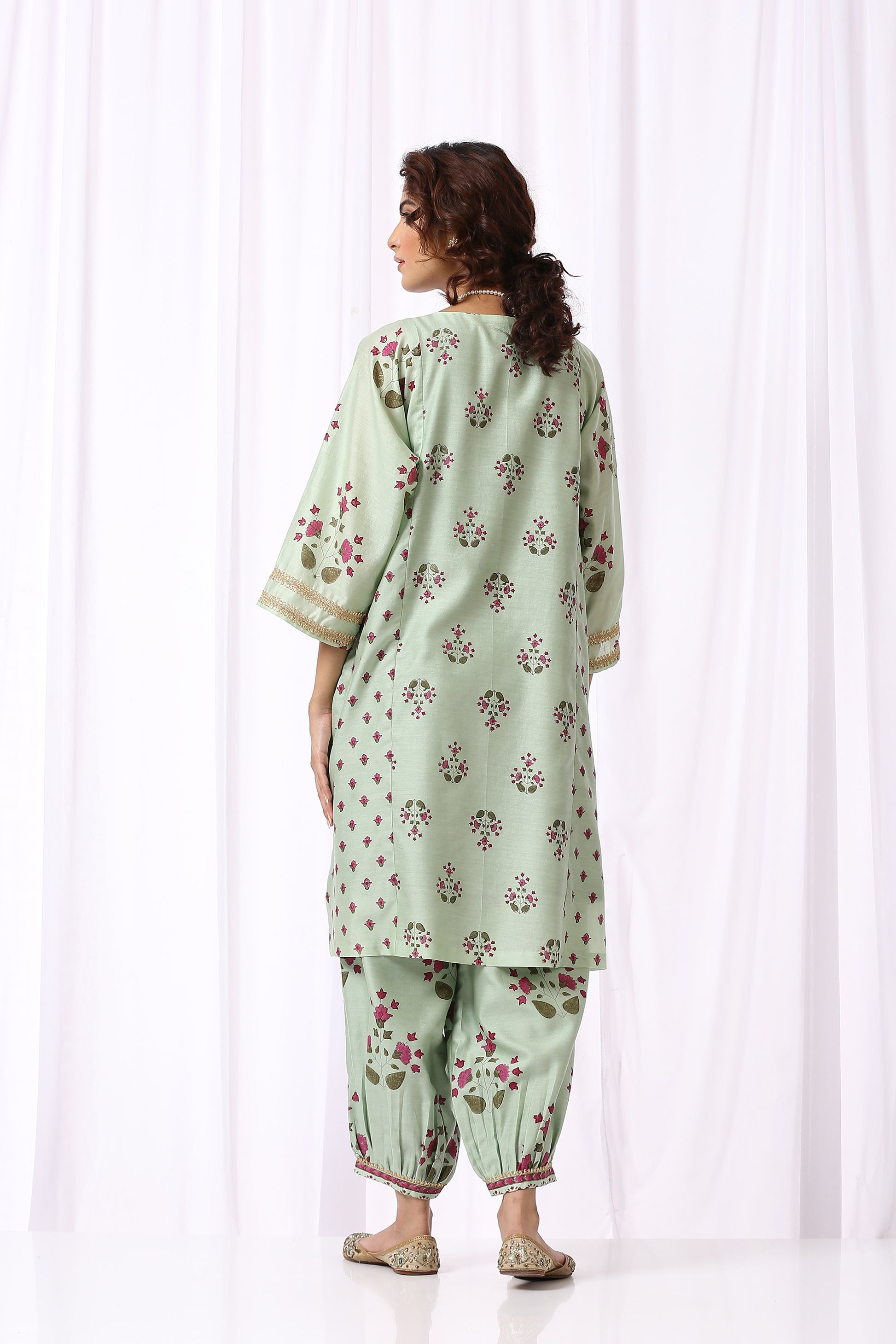 GREEN BASE CHANDERI HAND BLOCK PRINTED CHOGA SET OF-2