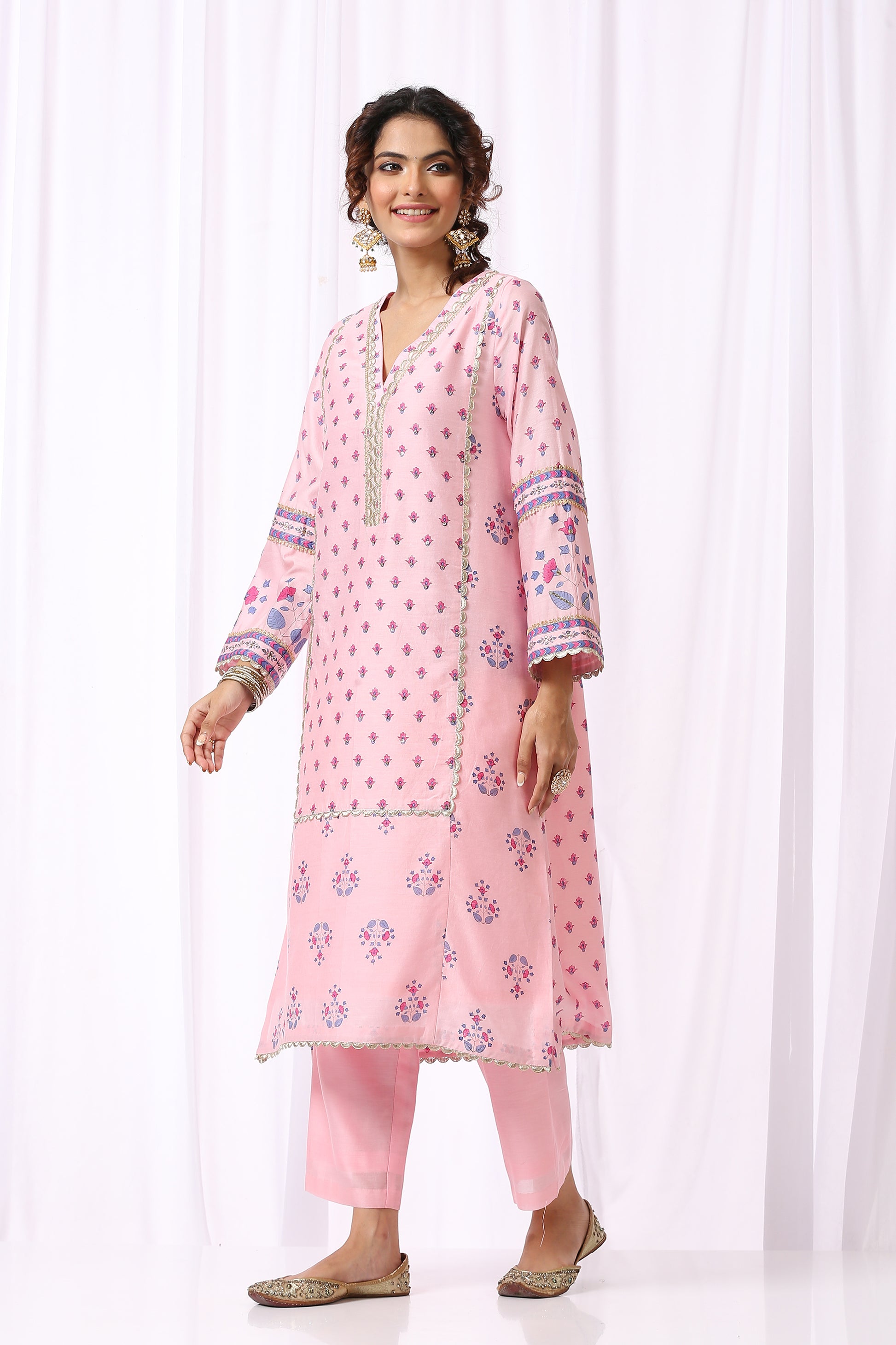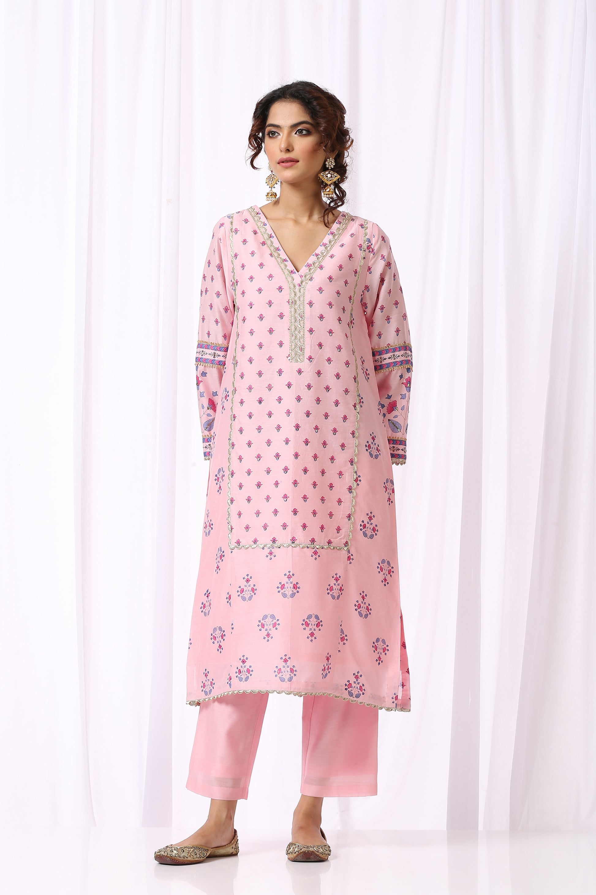 PINK BASE CHANDERI HAND BLOCK PRINTED KURTA SET OF-2