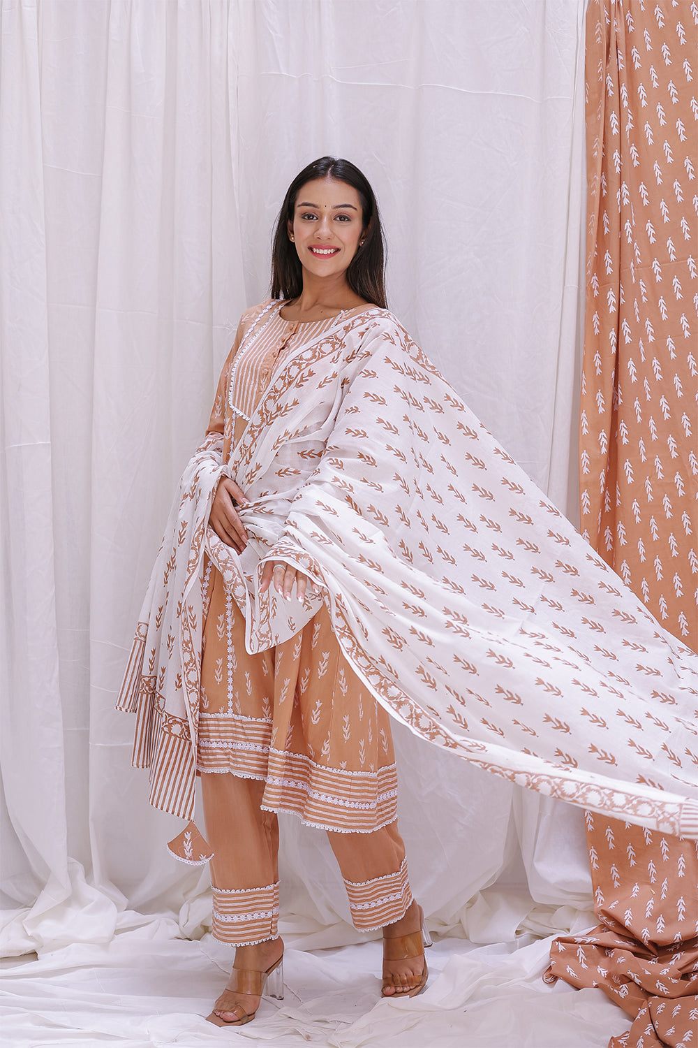BEIGE SHORT ANARKALI KURTA SET OF-2